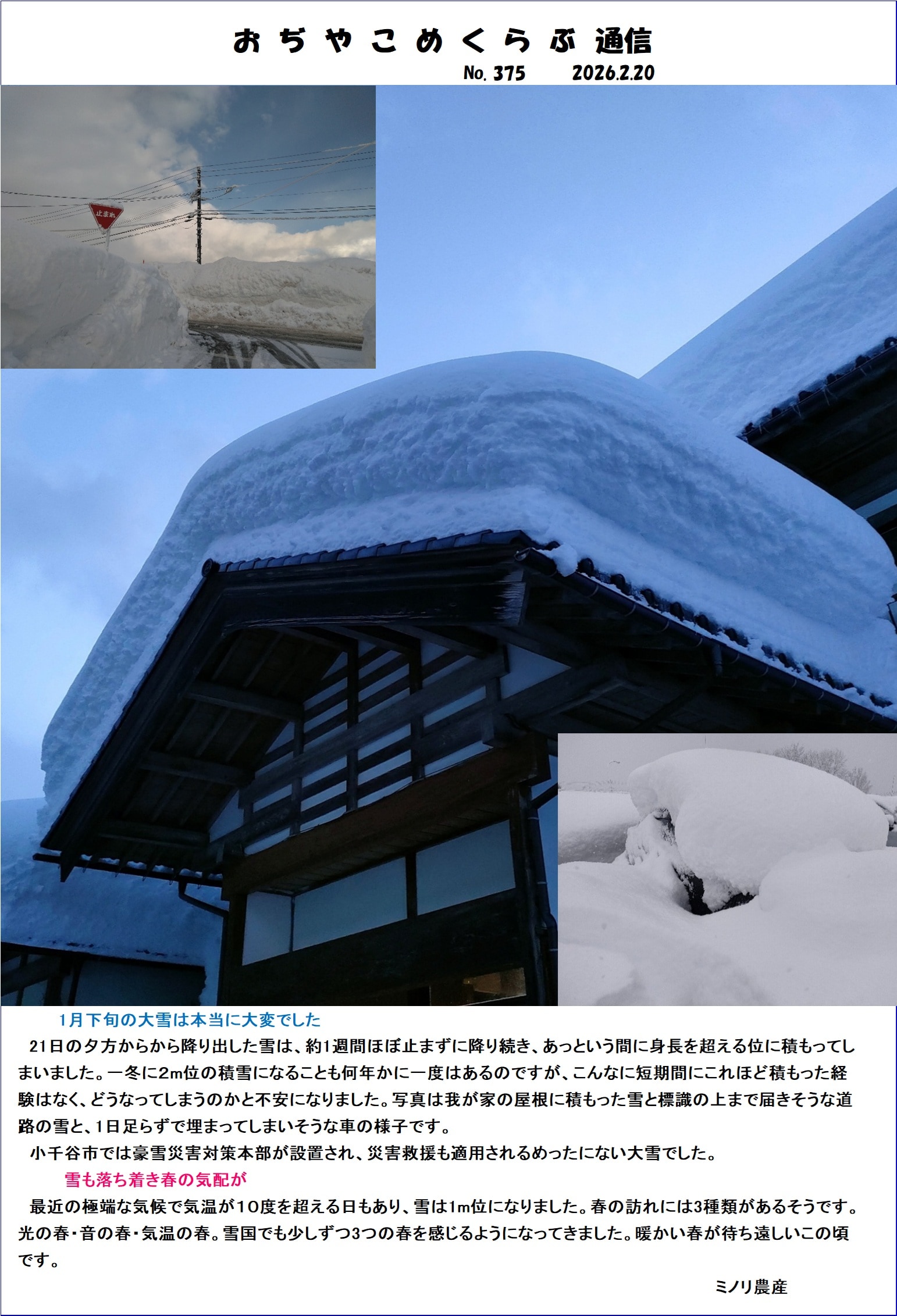 【おぢやこめくらぶ通信No.375/2026.2月号】