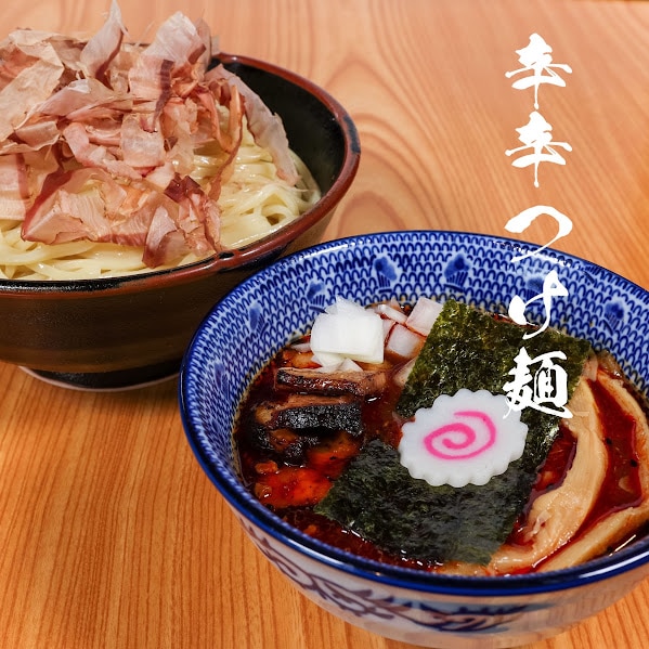『辛辛つけ麺』は唐辛子とフライドガーリック、ラー油でピリ辛スパイシーに仕上げております🌶️