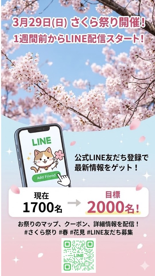 さくら祭りでは公式ラインのお友達も募集しておりますので是非お友達になって最新情報を受け取ってください!