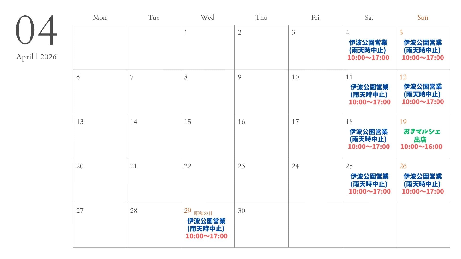 本日は4月のキッチンカー出店スケジュールのお知らせです。