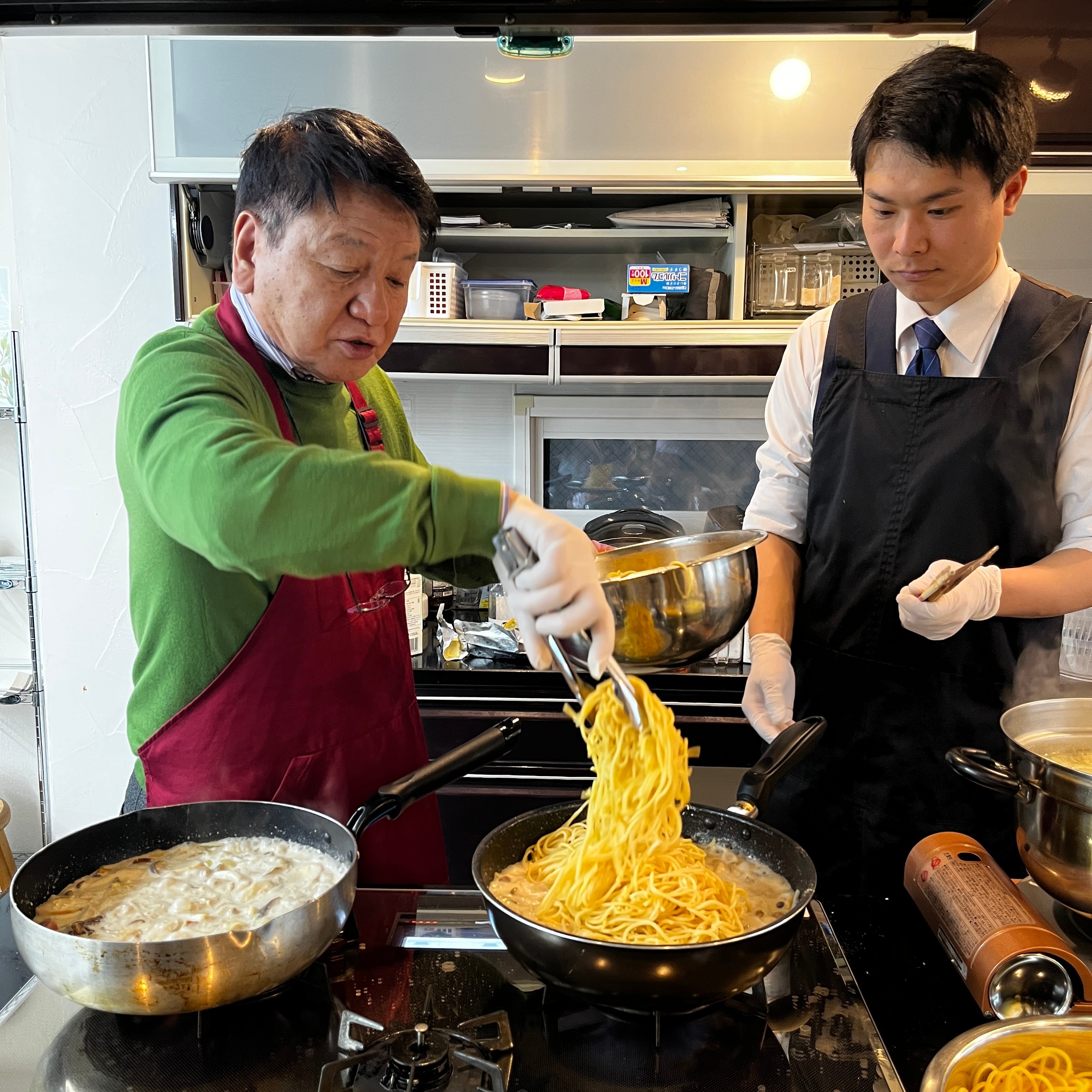 パスタを一度に20~25人分つくるのは本当に大変だと毎回思うのですが、社長は慣れた手つきでつくりあげていきます。