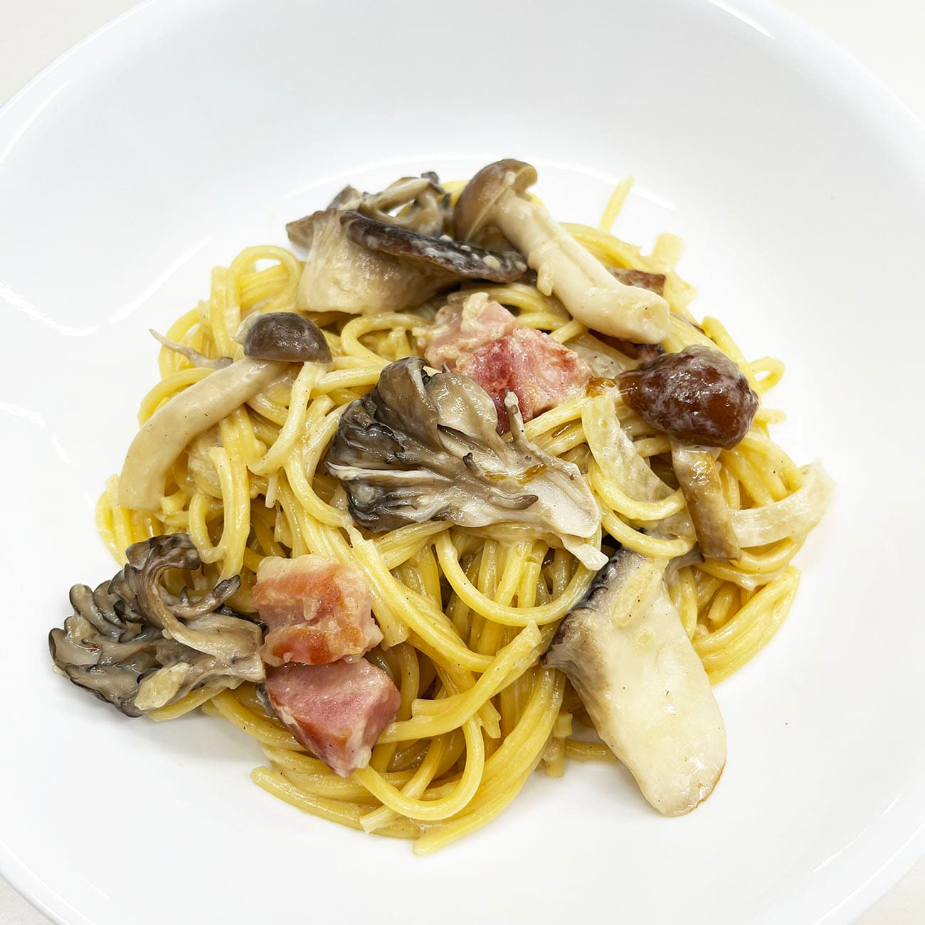 ベーコンとキノコのクリームパスタの完成!